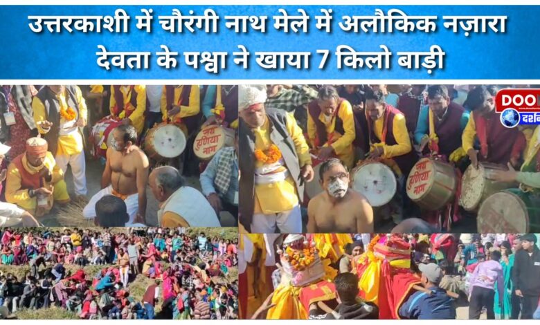 उत्तरकाशी में चौरंगी नाथ मेले में अलौकिक नज़ारा, देवता के पश्वा ने खाया 7 किलो बाड़ी