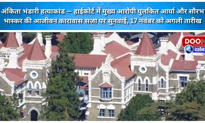 अंकिता भंडारी हत्याकांड — हाईकोर्ट में मुख्य आरोपी पुलकित आर्या और सौरभ भास्कर की आजीवन कारावास सजा पर सुनवाई, 17 नवंबर को अगली तारीख
