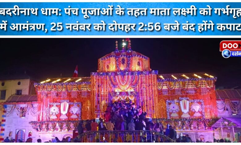 बदरीनाथ धाम: पंच पूजाओं के तहत माता लक्ष्मी को गर्भगृह में आमंत्रण, 25 नवंबर को दोपहर 2:56 बजे बंद होंगे कपाट