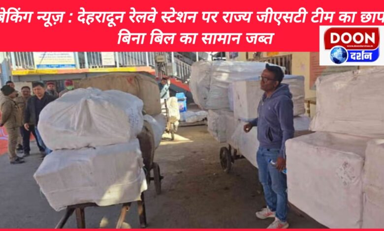 ब्रेकिंग न्यूज़ : देहरादून रेलवे स्टेशन पर राज्य जीएसटी टीम का छापा, बिना बिल का सामान जब्त