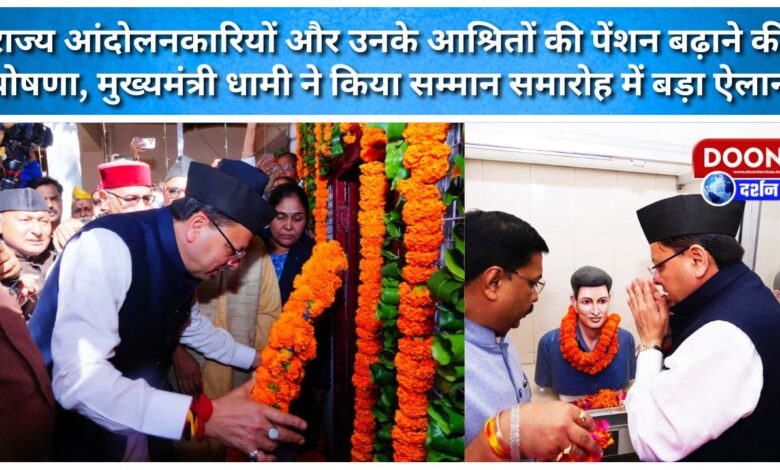 राज्य आंदोलनकारियों और उनके आश्रितों की पेंशन बढ़ाने की घोषणा, मुख्यमंत्री धामी ने किया सम्मान समारोह में बड़ा ऐलान