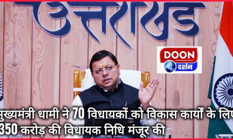 मुख्यमंत्री धामी ने 70 विधायकों को विकास कार्यों के लिए 350 करोड़ की विधायक निधि मंजूर की
