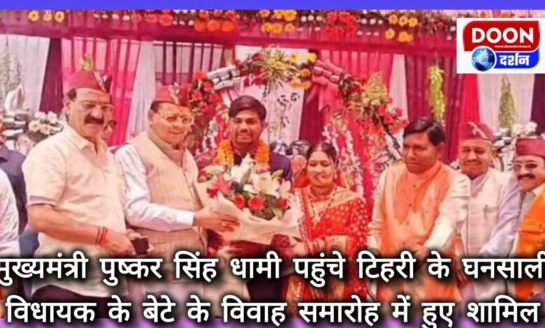 मुख्यमंत्री पुष्कर सिंह धामी पहुंचे टिहरी के घनसाली, विधायक के बेटे के विवाह समारोह में हुए शामिल