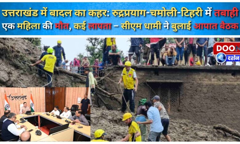 उत्तराखंड में बादल का कहर: रुद्रप्रयाग-चमोली-टिहरी में तबाही, एक महिला की मौत, कई लापता – सीएम धामी ने बुलाई आपात बैठक