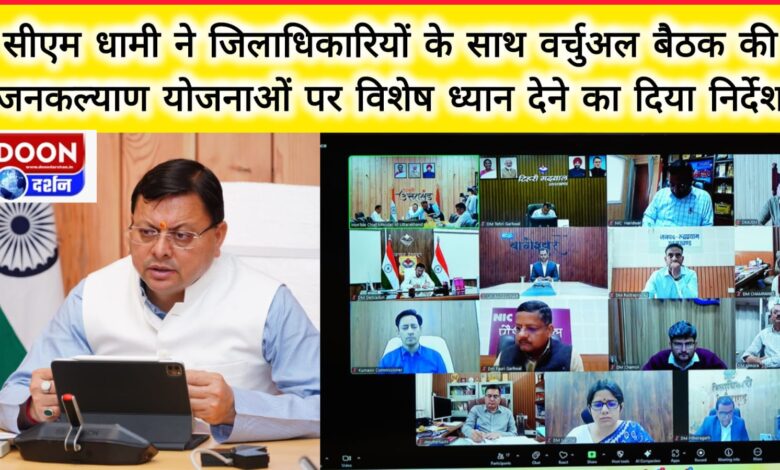 सीएम धामी ने जिलाधिकारियों के साथ वर्चुअल बैठक की, जनकल्याण योजनाओं पर विशेष ध्यान देने का दिया निर्देश