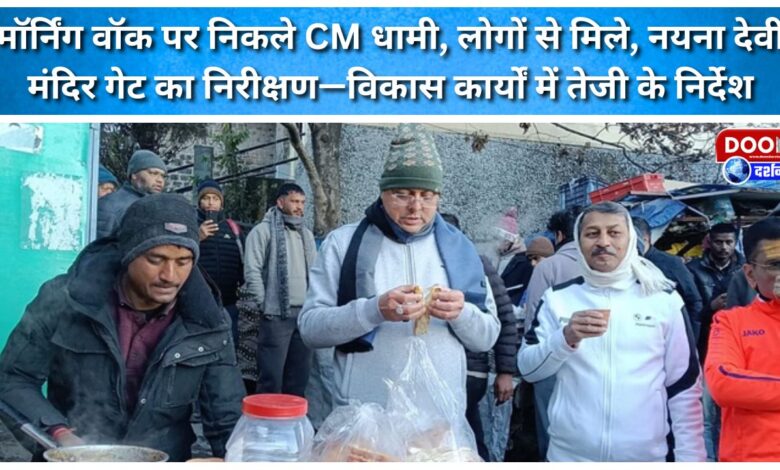 मॉर्निंग वॉक पर निकले CM धामी, लोगों से मिले, नयना देवी मंदिर गेट का निरीक्षण—विकास कार्यों में तेजी के निर्देश