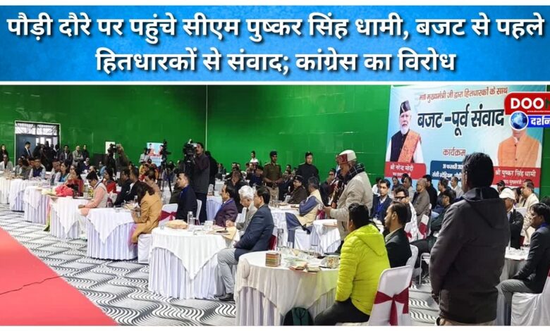 पौड़ी दौरे पर पहुंचे सीएम पुष्कर सिंह धामी, बजट से पहले हितधारकों से संवाद; कांग्रेस का विरोध
