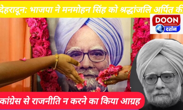 देहरादून: भाजपा ने मनमोहन सिंह को श्रद्धांजलि अर्पित की, कांग्रेस से राजनीति न करने का किया आग्रह