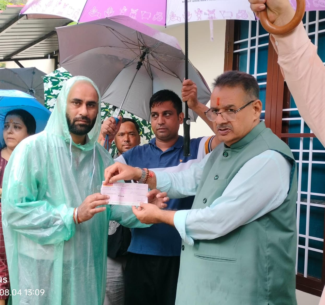 मंत्री गणेश जोशी ने दून विहार क्षेत्र में बारिश से प्रभावित लोगों को राहत स्वरूप तात्कालिक सहायता राशि के चेक भी वितरित किए। इनमें सुनीता देवी और प्रमिला चौहान को ₹6500-₹6500 और चन्दन सिंह बिष्ट को ₹13000 की सहायता राशि प्रदान की गई। इस मौके पर मंत्री जोशी ने कहा कि प्रदेश सरकार आपदा की हर घड़ी में आमजन के साथ खड़ी है। उन्होंने स्थानीय प्रशासन को सतर्क रहते हुए राहत कार्यों को युद्ध स्तर पर जारी रखने के निर्देश भी दिए।