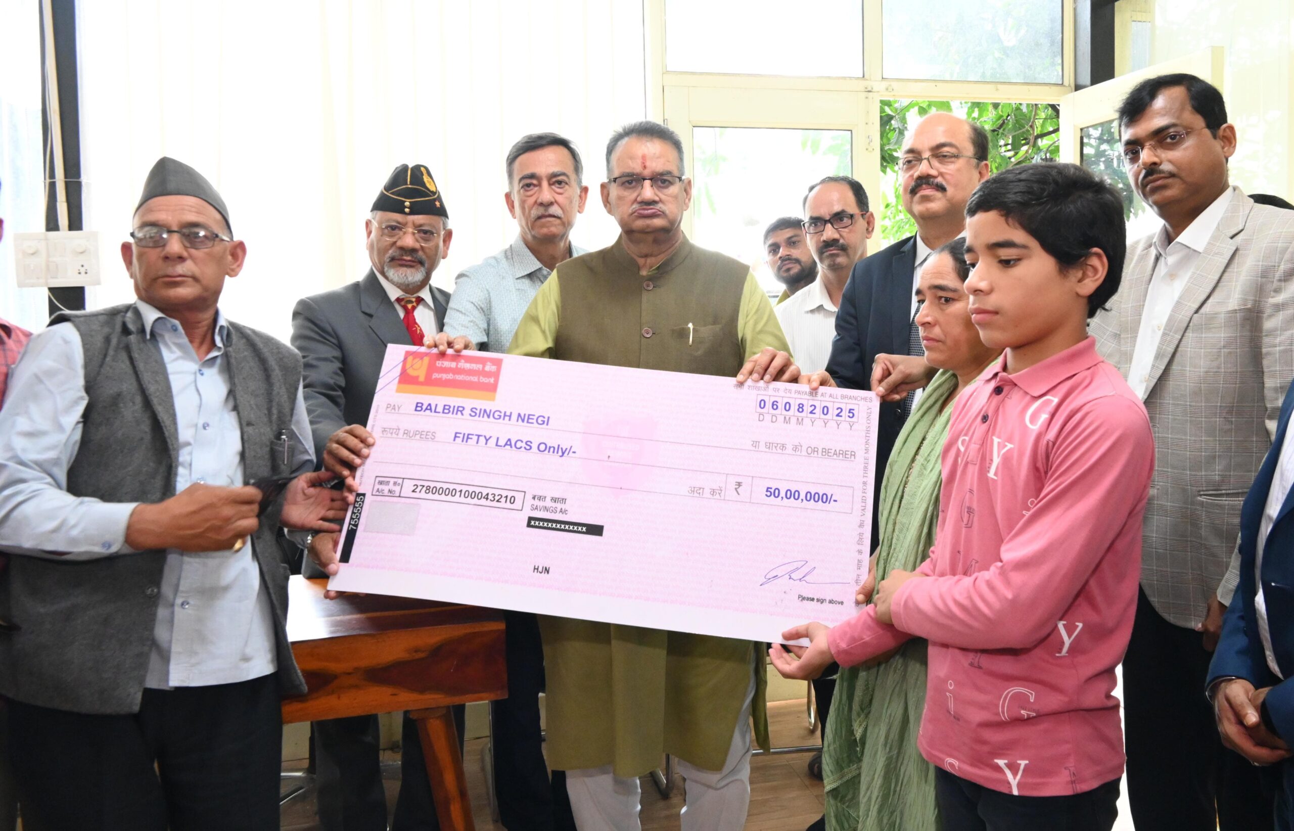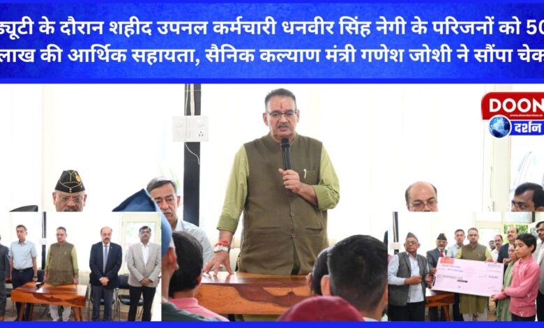 ड्यूटी के दौरान शहीद उपनल कर्मचारी धनवीर सिंह नेगी के परिजनों को 50 लाख की आर्थिक सहायता, सैनिक कल्याण मंत्री गणेश जोशी ने सौंपा चेक