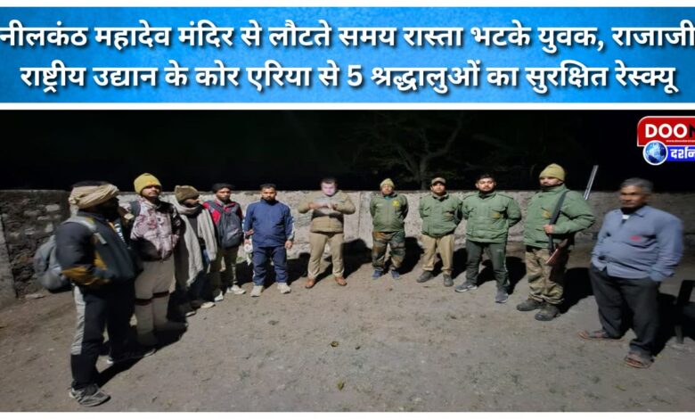 नीलकंठ महादेव मंदिर से लौटते समय रास्ता भटके युवक, राजाजी राष्ट्रीय उद्यान के कोर एरिया से 5 श्रद्धालुओं का सुरक्षित रेस्क्यू