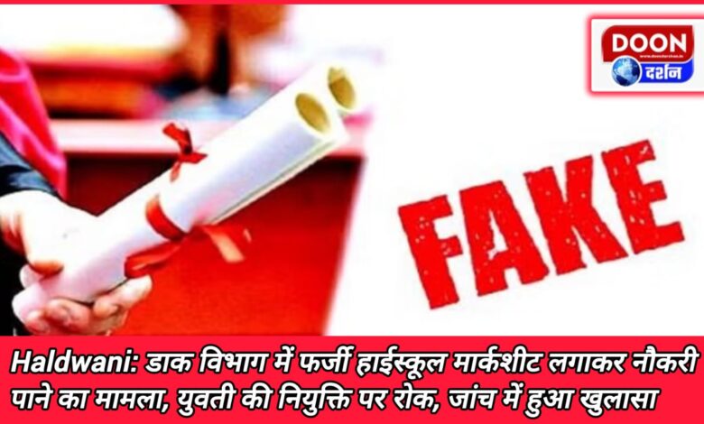 Haldwani: डाक विभाग में फर्जी हाईस्कूल मार्कशीट लगाकर नौकरी पाने का मामला, युवती की नियुक्ति पर रोक, जांच में हुआ खुलासा