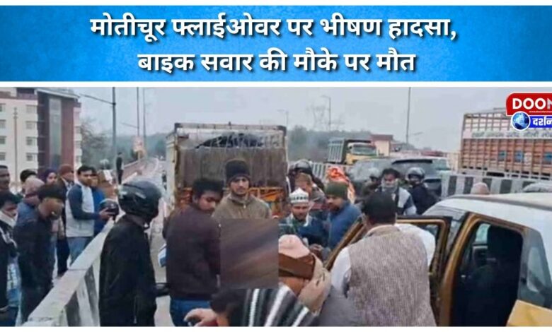 मोतीचूर फ्लाईओवर पर भीषण हादसा, बाइक सवार की मौके पर मौत