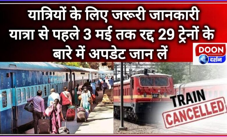 यात्रियों के लिए जरूरी जानकारी: यात्रा से पहले 3 मई तक रद्द 29 ट्रेनों के बारे में अपडेट जान लें