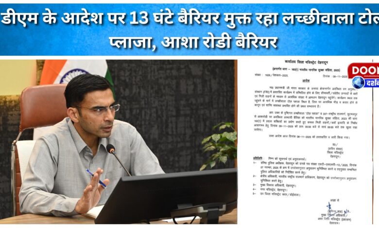 डीएम के आदेश पर 13 घंटे बैरियर मुक्त रहा लच्छीवाला टोल प्लाजा, आशा रोडी बैरियर