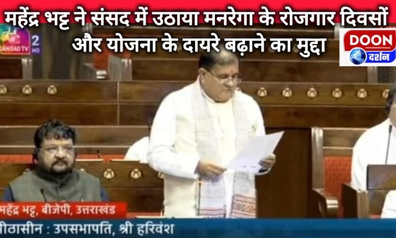 देहरादून। राज्यसभा सांसद और प्रदेश अध्यक्ष महेंद्र भट्ट ने मनरेगा कार्य दिवसों की संख्या और योजना के दायरे को बढ़ाने का मुद्दा संसद में उठाया है।