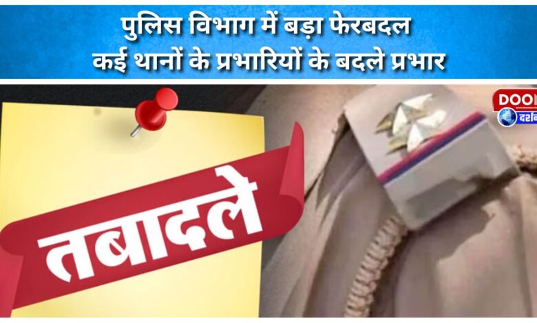 पुलिस विभाग में बड़ा फेरबदल, कई थानों के प्रभारियों के बदले प्रभार