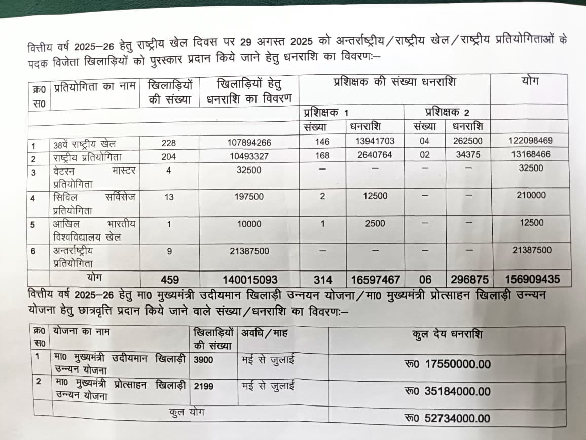 समारोह में वितरित धनराशि, विजेता खिलाड़ियों और योजनाओं का विवरण निम्नवत है। 👇👇👇