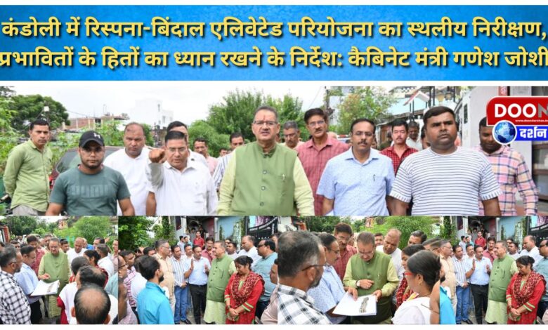 कंडोली में रिस्पना-बिंदाल एलिवेटेड परियोजना का स्थलीय निरीक्षण, प्रभावितों के हितों का ध्यान रखने के निर्देश: कैबिनेट मंत्री गणेश जोशी