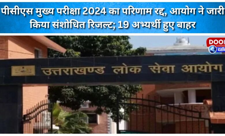 उत्तराखंड लोक सेवा आयोग ने उत्तराखंड सम्मिलित राज्य सिविल/प्रवर अधीनस्थ सेवा परीक्षा (PCS) 2024 के मुख्य परीक्षा परिणाम को तकनीकी त्रुटि बताते हुए निरस्त भी कर दिया और संशोधित परिणाम भी जारी कर दिया है। नए परिणाम में 19 अभ्यर्थियों के रोल नंबर ही हटा दिए गए हैं।
