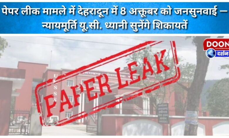 पेपर लीक मामले में देहरादून में 8 अक्तूबर को जनसुनवाई — न्यायमूर्ति यू.सी. ध्यानी सुनेंगे शिकायतें