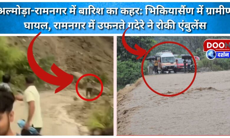 अल्मोड़ा-रामनगर में बारिश का कहर: भिकियासैंण में ग्रामीण घायल, रामनगर में उफनते गदेरे ने रोकी एंबुलेंस