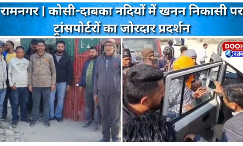 रामनगर | कोसी-दाबका नदियों में खनन निकासी पर ट्रांसपोर्टरों का जोरदार प्रदर्शन