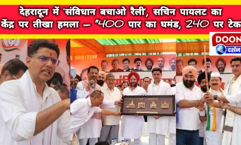 देहरादून में ‘संविधान बचाओ रैली’, सचिन पायलट का केंद्र पर तीखा हमला – “400 पार का घमंड, 240 पर टेक”