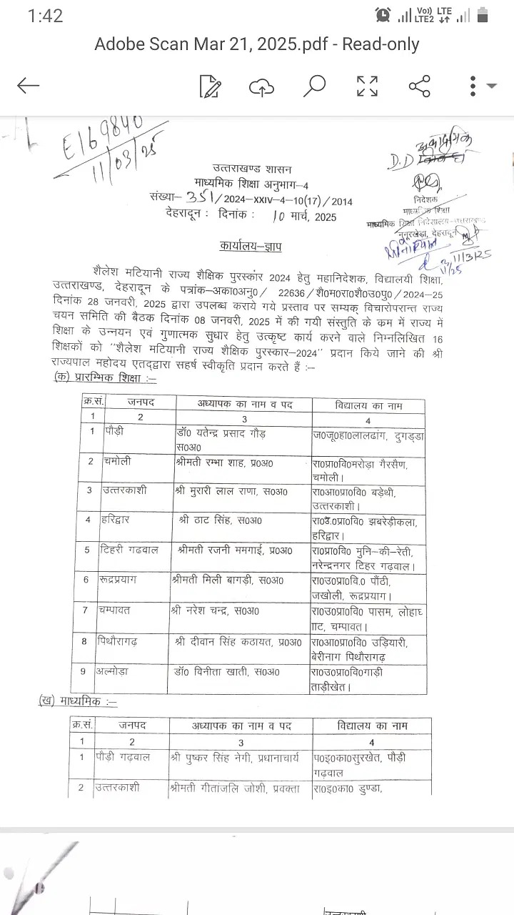 प्रदेश के शिक्षकों को शैलेश मटियानी पुरस्कार से सम्मानित किया जाएगा, शासन ने सूची जारी की।