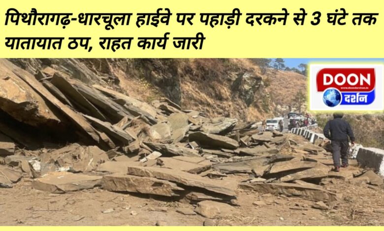 पिथौरागढ़-धारचूला हाईवे पर पहाड़ी दरकने से 3 घंटे तक यातायात ठप, राहत कार्य जारी