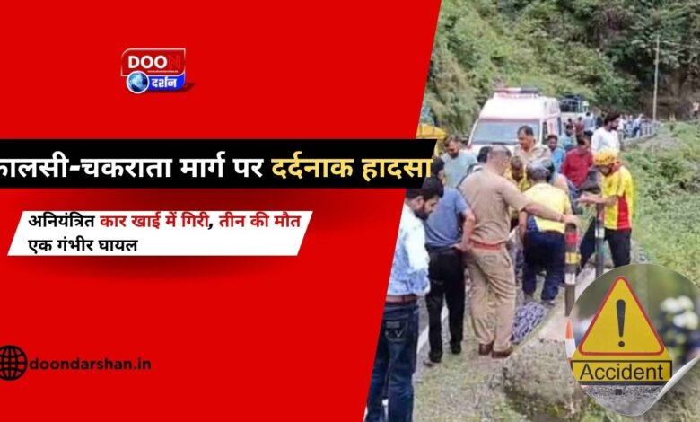 कालसी-चकराता मार्ग पर दर्दनाक हादसा: अनियंत्रित कार खाई में गिरी, तीन की मौत, एक गंभीर घायल