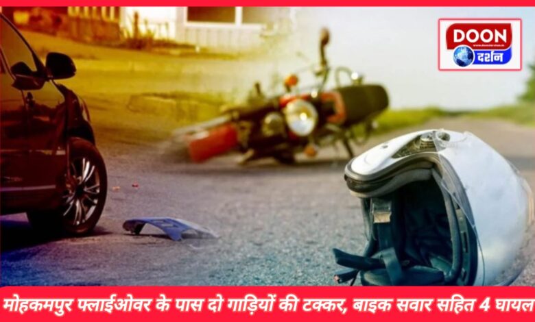 मोहकमपुर फ्लाईओवर के पास दो गाड़ियों की टक्कर, बाइक सवार सहित 4 घायल