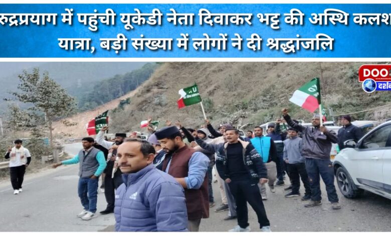 रुद्रप्रयाग में पहुंची यूकेडी नेता दिवाकर भट्ट की अस्थि कलश यात्रा, बड़ी संख्या में लोगों ने दी श्रद्धांजलि
