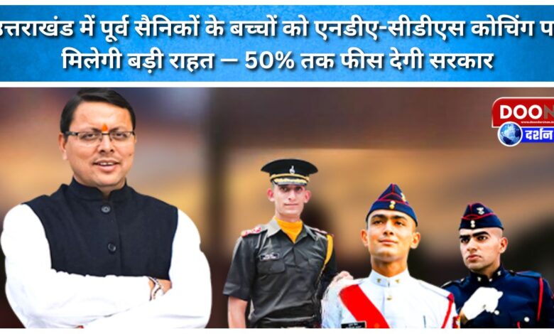 उत्तराखंड में पूर्व सैनिकों के बच्चों को एनडीए-सीडीएस कोचिंग पर मिलेगी बड़ी राहत — 50% तक फीस देगी सरकार