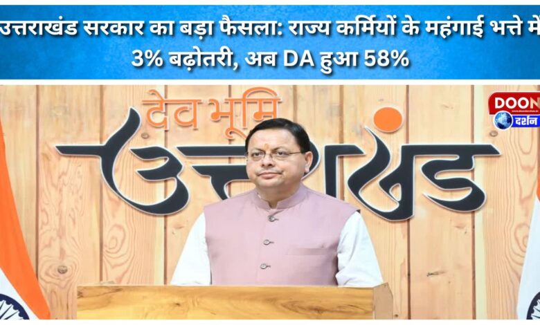 उत्तराखंड सरकार का बड़ा फैसला: राज्य कर्मियों के महंगाई भत्ते में 3% बढ़ोतरी, अब DA हुआ 58%