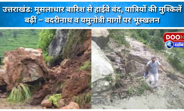 उत्तराखंड: मूसलाधार बारिश से हाईवे बंद, यात्रियों की मुश्किलें बढ़ीं – बदरीनाथ व यमुनोत्री मार्गों पर भूस्खलन