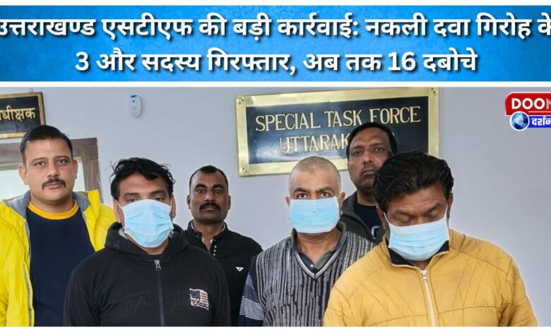 उत्तराखण्ड एसटीएफ की बड़ी कार्रवाई: नकली दवा गिरोह के 3 और सदस्य गिरफ्तार, अब तक 16 दबोचे
