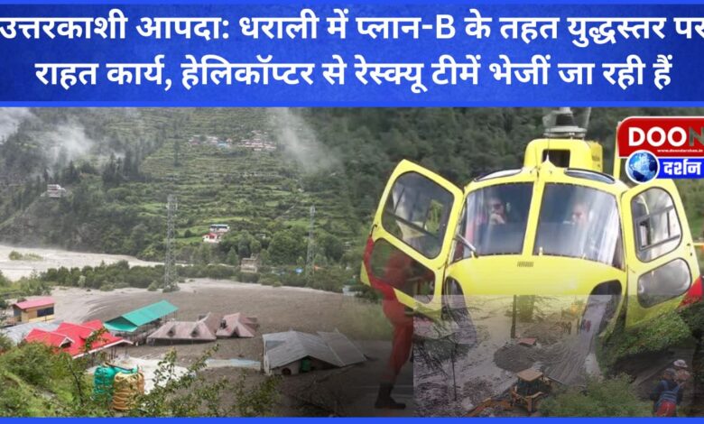 उत्तरकाशी आपदा: धराली में प्लान-B के तहत युद्धस्तर पर राहत कार्य, हेलिकॉप्टर से रेस्क्यू टीमें भेजीं जा रही हैं